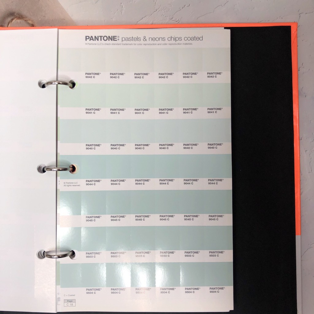 Hệ màu : Gồm 1 sách màu : với giấy bóng C - Coated và giấy mờ U - Uncoated . Mã đầu : 9xxx - Ví dụ : 9184 C , 9184 U